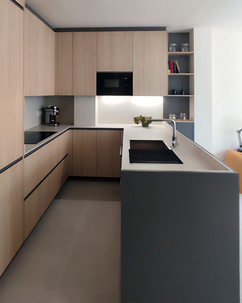 Pensámos e desenhámos cada detalhe até ao último milímetro para que a estética não competisse com a funcionalidade, mas andasse de mãos dadas. E é neste equilíbrio que reside a verdadeira arte do design de cozinhas.